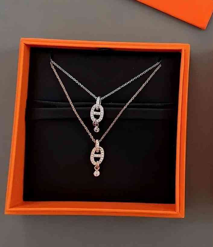 预算多的还可以叠戴爱马仕的猪鼻子项链,可挑选颜色也非常多,hermes爱马仕满钻猪鼻子吊钻项链,玫瑰金,银色两个颜色,这款很精致简约,特别适合日常搭配。