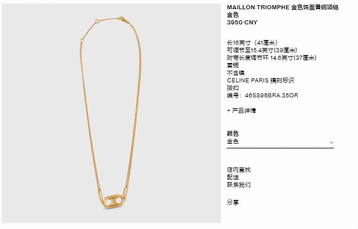 celine的时尚项链都是黄铜材质,一条将近4000块。周大福的这条”old celine“是足金的,均价2500左右。