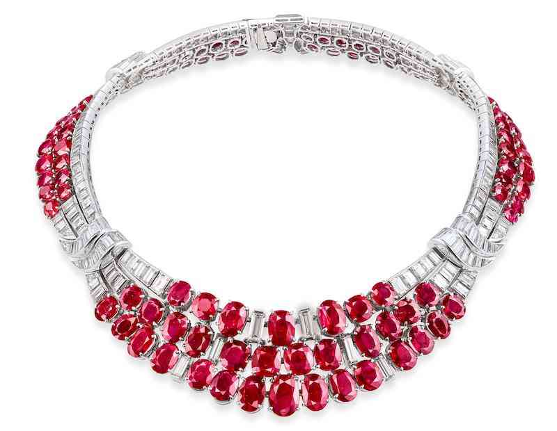 丝巾造型项链,1936年 铂金、红宝石、钻石