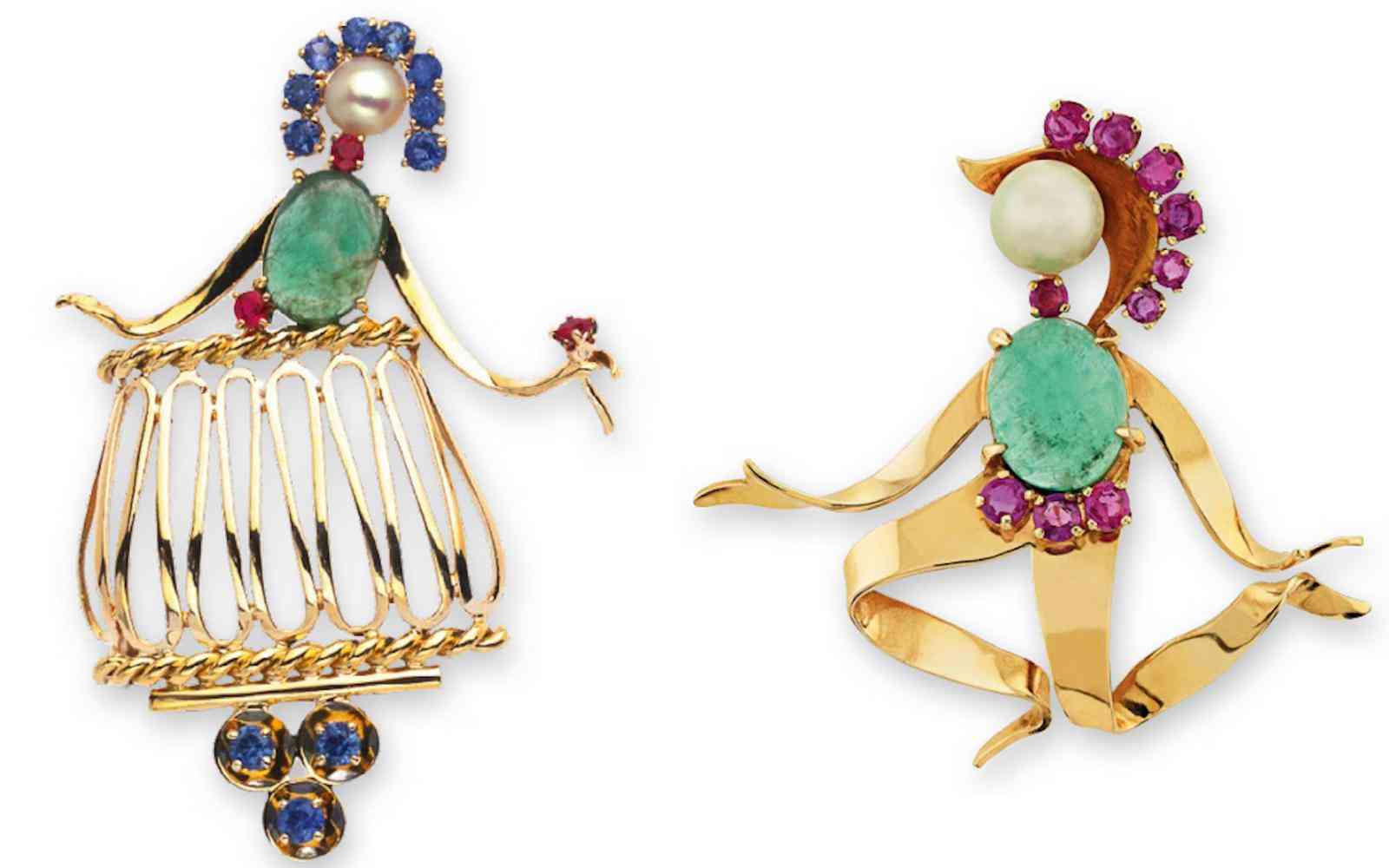 展览的中厅则以“爱”为主题,所展出的展品均为往昔的爱情信物及爱的馈赠,再现20世纪每一段传奇恋曲,体现爱的力量。在这里展出了一对灵感源自1597年问世的莎士比亚悲剧《罗密欧与朱丽叶》的黄金胸针。凯普莱特家族后花园的阳台之上,罗密欧与朱丽叶互诉爱意,这一对胸针将莎翁剧中经典的一幕再现。黄K金勾勒出两人的身影,红宝石、蓝宝石、祖母绿和珍珠打造脸庞、发丝和服装,在宝石的演绎之下,将这矢志不渝的爱情化为永恒。