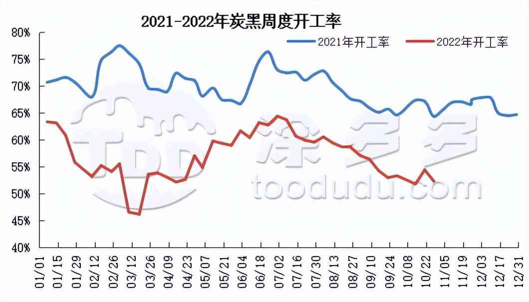 本周国内炭黑行业周开工率为52.26%,较上周减少2.12%;受公共卫生事件影响,部分地区“静默”,企业开工受限,炭黑样本企业整体开工较上周有所下调。下周期来看,原料高温煤焦油市场价格延续高位,对炭黑市场支撑较强,然公共卫生事件散点频发,预计短期炭黑企业开工负荷低位。