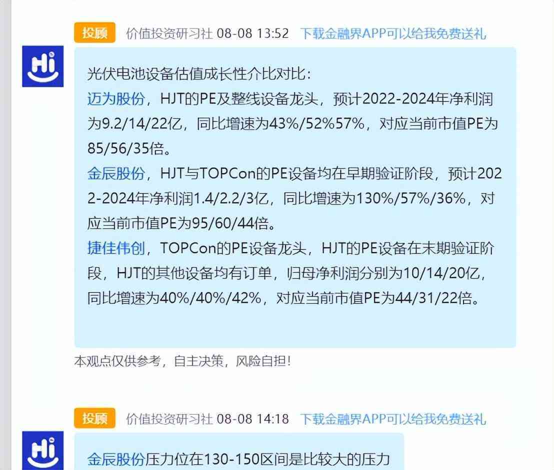 光伏板块尤其是落后的细分领域连续上涨,这主要体现在hjt与topcon等新技术方向上,落后的公司比如金辰股份最近强势,今天遇到短期压力位置有调整的风险。