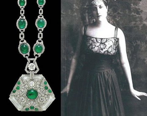 这条美丽的项链的女主人是西班牙的一位著名舞蹈家Anita Delgado,后来的卡普塔拉公主。这条华丽的项链由晶莹璀璨的钻石、绿宝石和水晶石组成,作为著名的珍宝拍卖品在伦敦Christie拍卖行留下过身影,还曾经是印度王公最爱的大象装饰,目前估价为大约10万英镑。