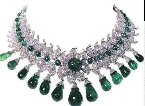 这条晶莹剔透的绿宝石项链的女主人是意大利最后一任女王:Marie Jose。她以自己众多的精美的珠宝收藏而被世人所知,这条项链就是女王众多收藏中的一件。它由无数的钻石以及精美的绿宝石所组成,银绿交映,夺人心魄,由著名法国珠宝制造商Van Cleef and Arpels所制。