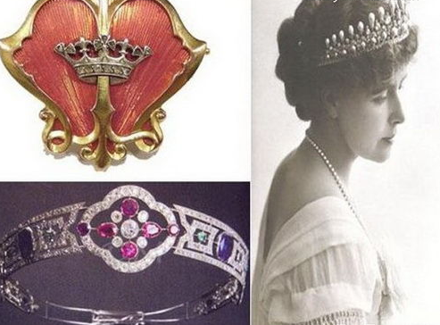 这枚华丽的胸针以及皇冠,属于罗马尼亚女王——玛丽女王,她是俄国Alfred王子(爱丁堡公爵)和女大公爵MariaalExandrovna的大女儿。这枚美丽的胸针呈贝壳状,上面压制着罗马尼亚公主的皇冠造型和字母组合,由俄罗斯著名珠宝设计商C. Faberge制造。另一件美妙绝伦的属于罗马尼亚皇室家族的钻石皇冠则由黄金和各种宝石组成,华彩夺目,价值不菲。