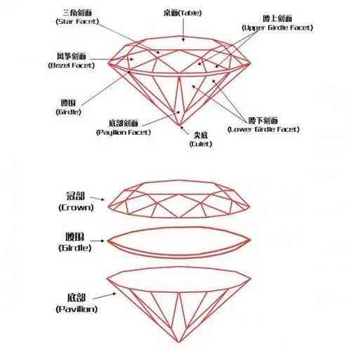 包含1台面、8风筝刻面、8星形刻面、16腰上小面、16腰下小面、8底部主刻面,及一可能有或没有的尖底。