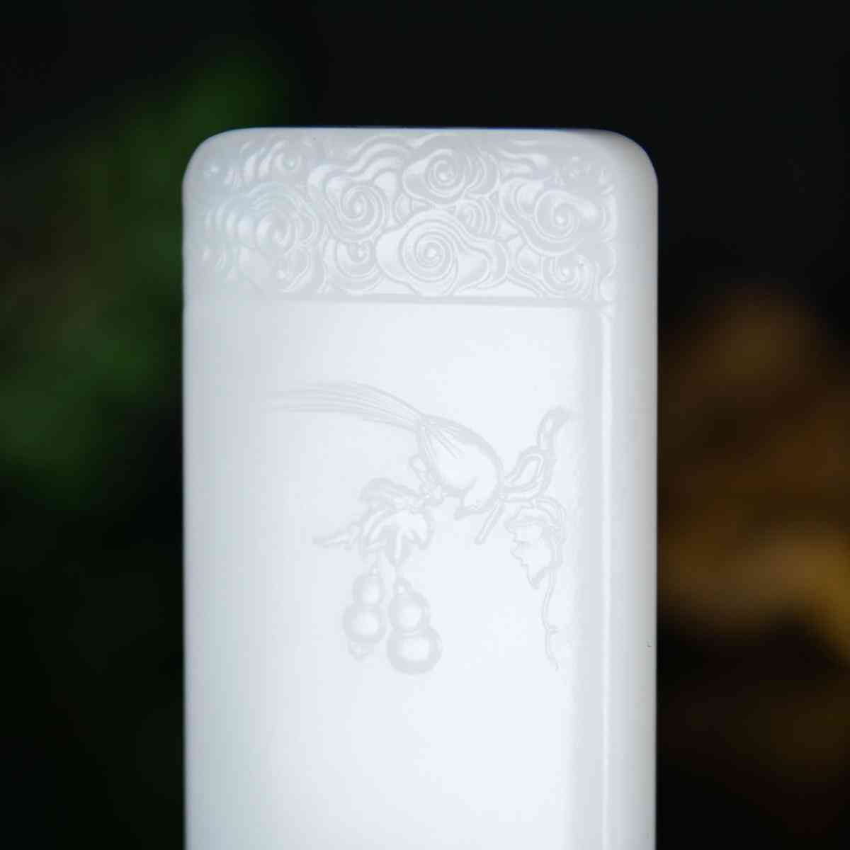 强光进行手电筒直射在和田玉的表面,和田玉内显透光性,且光韵为相对系统聚光,而直射在石英岩、大理岩、玻璃材料混合金属制品理论上光韵则相对高度散光。直射的照玉石强光手电筒慢慢平移时,可鉴定玉石质地结构是否均匀。手电筒平移时,玉石的透