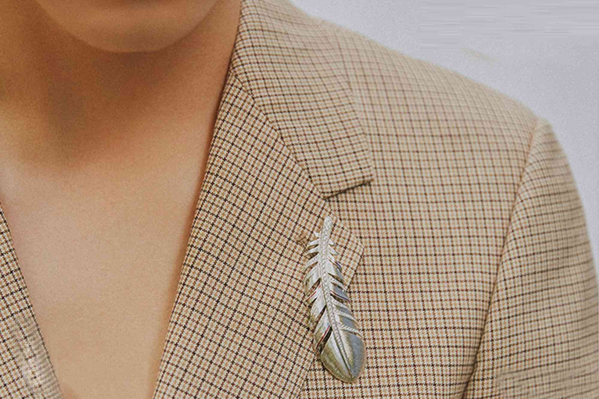 在这个冬天里,男生穿搭中可以搭配珠宝的不多,西装上的胸针是一个点睛之笔。马天宇身穿格纹西装,胸前佩戴的是周大福铂金和平天使的羽毛胸针,整体的搭配和谐又有重点,绅士范儿扑面而来。