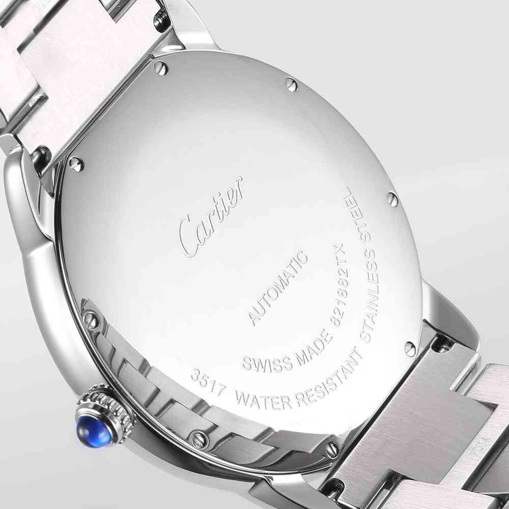 接下来说说正品手表和仿表字体上的区别,正品手表上的刻字字体清晰、深刻,字体的笔画比较瘦弱。虽然字迹很微小,但是仔细观察,每一个字母都清晰明了。此外,背盖的Cartier的字体是有粗有细的,而复刻表往往字母都是粗细一致的。真表字母与字母连接的比较较细,笔画转弯的地方较细。字母r右上部笔画收尾比较圆。字母C右上头笔锋明显。这些细节往往是假表所忽视或者是技术实力不够,压根做不到的。仔细去观察对比,就可以看得出来!