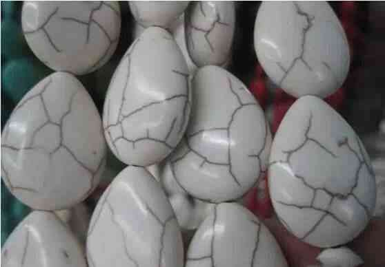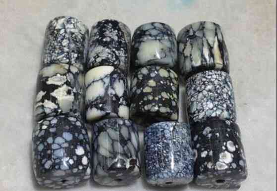 新疆松,仿真度极高的白松(菱镁矿加色),这是做假天珠的人所做的创新品种,把看不见的石纹变成可见的黑色线纹,以假乱真。