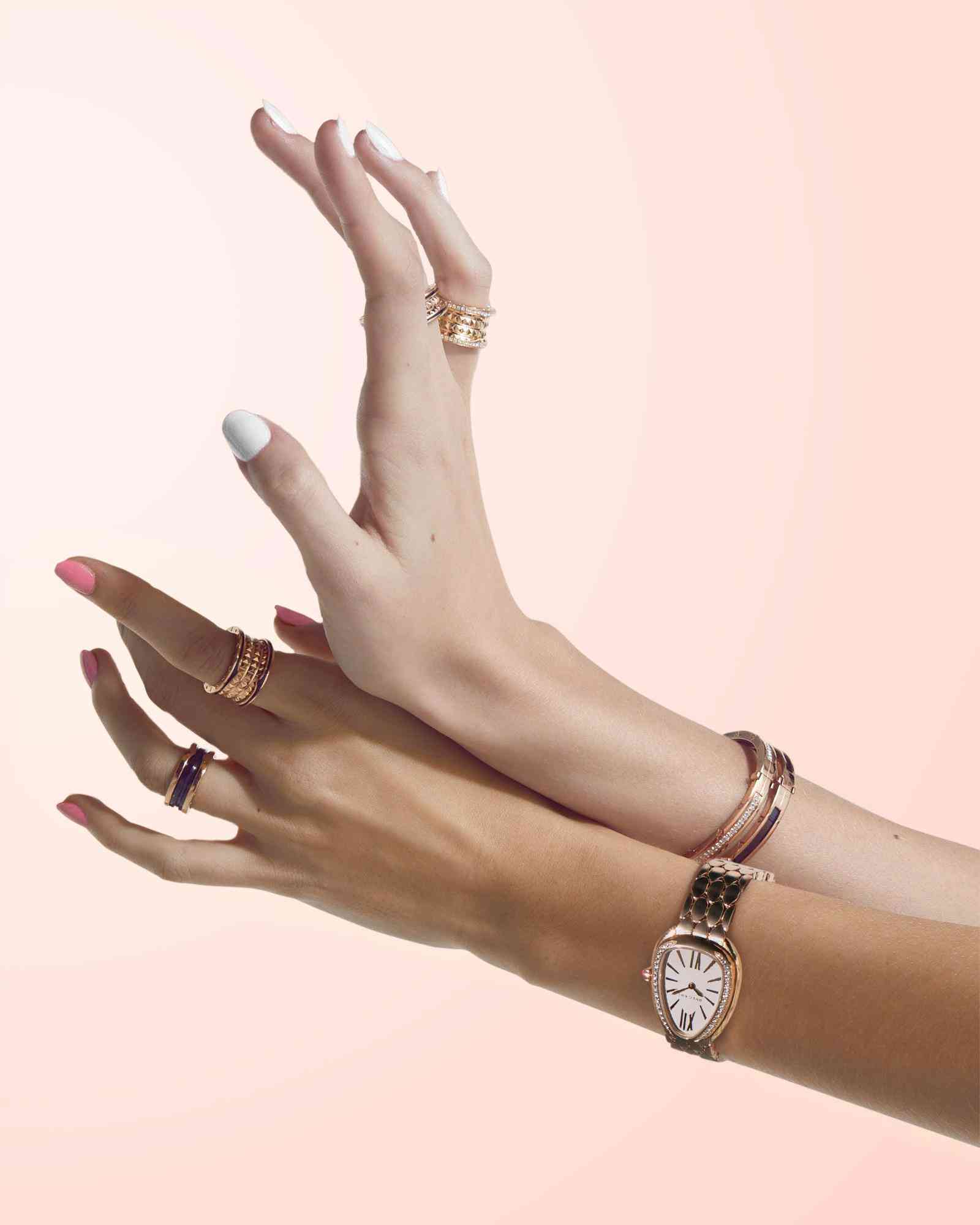 Serpenti Viper系列:有二十款左右的对戒,除了18K金光金款、镶钻款之外,还有镶嵌孔雀石、红玉髓、玛瑙、贝母的Serpenti Viper对戒。镶嵌钻石的更适合做为对戒搭配,但是颜值来说镶嵌孔雀石的蛇戒更漂亮,我一些朋友都有单独佩戴此款女戒。