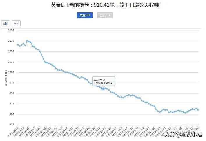 【黄金ETF持仓】截止到12月16日,较上一日减少3.47吨,当前持仓为910.41吨。