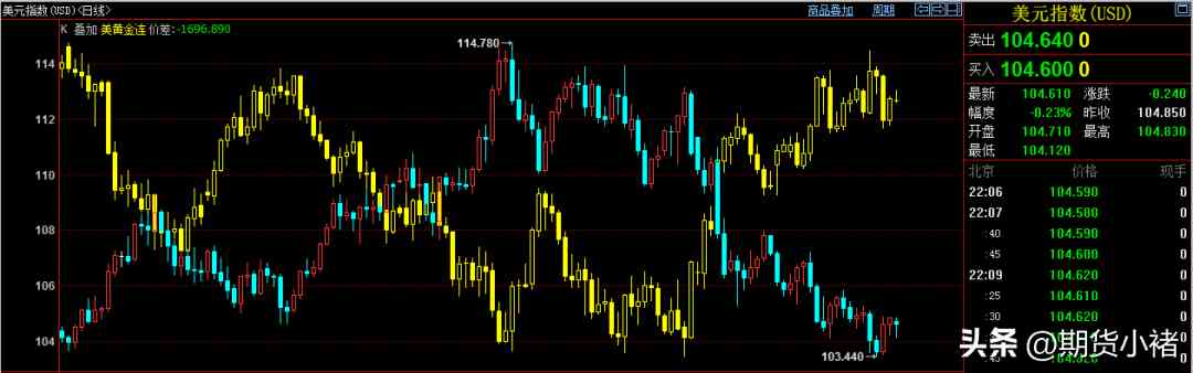 美元指数和黄金价格长期呈现负相关性,近期,美元指数一路狂飙,9月28日最高升至114.580,震荡运行;进入11月份后再度回落,12月份延续上月的震荡回落趋势,并创下半年来新低
