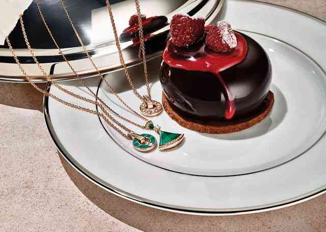 宝格丽品牌御用的孔雀石具有复古气息,很耐看。搭配同色系或黑色系服装则显高级。