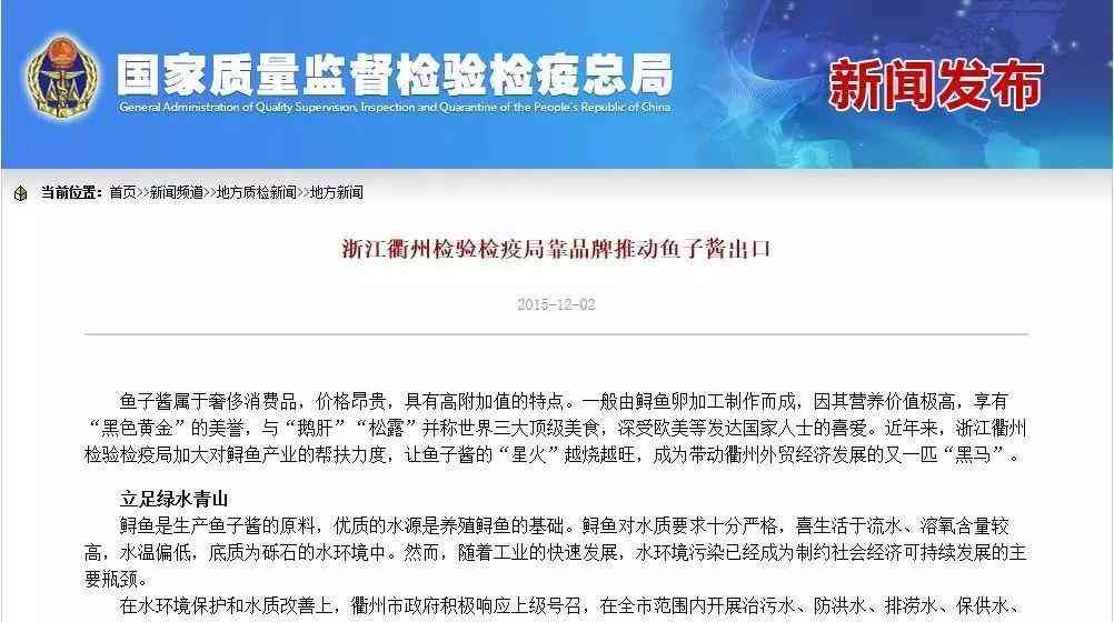 根据衢州出入境检验检疫局统计,2016年衢州辖区鱼子酱出口量达48吨、货值1761万美元,连续第五年实现稳定增长。