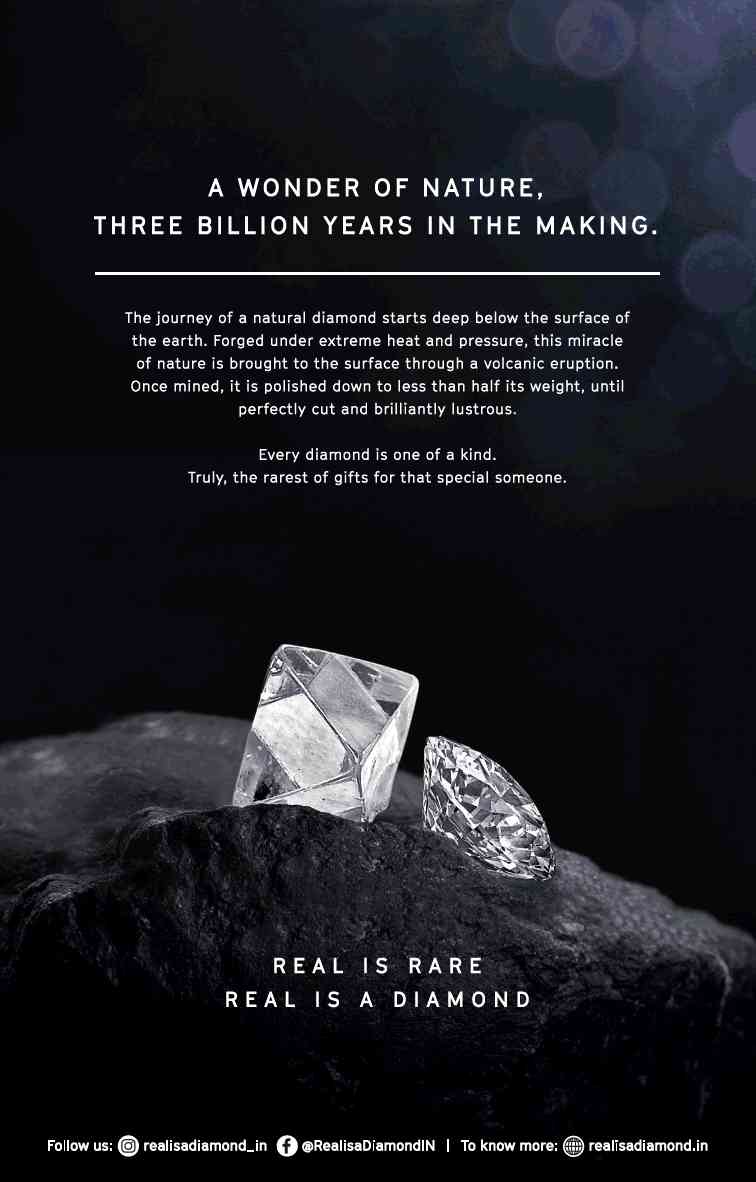 天然钻石品牌在培育钻石被更多人知道的过程中也没闲着,许多钻石品牌联合发起了“Real is Rare”的宣传,告诉你纯天然的钻石要更加珍贵。再加上天然钻石本身就是不可再生的类型,历经几亿年才能获得,因此也有不少人会被这种数亿年形成的天然宝石所打动。