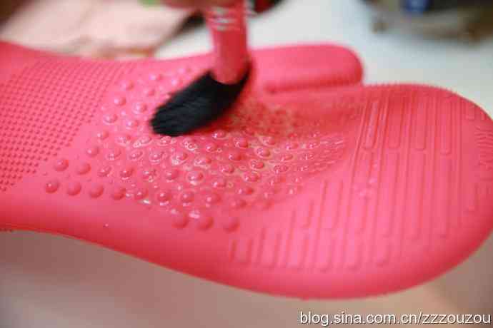 质量无敌的好,重点是真的很萌有没有~其实用法非常非常的简单。虽然乍一看只是一个带凸起的手套,但是并没有想象中那么简单~~他每一个部位的纹路都不同,这样你可以根据你的刷子来看看选哪个纹路进行清洗。一般来说动物毛的要问纹路粗一些的,这样不会对刷子造成伤害~