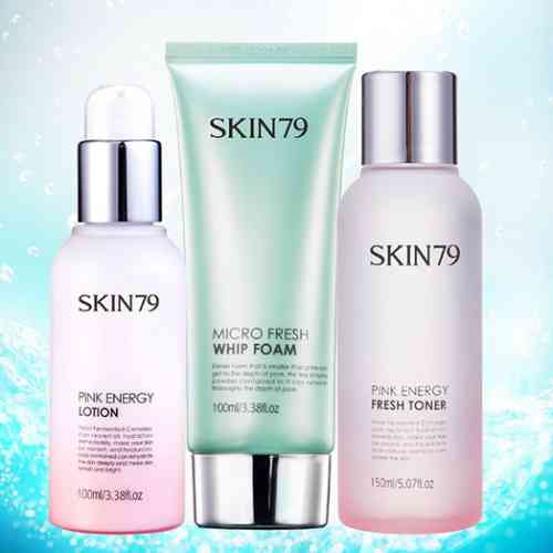 SKIN79清爽补水型基础护肤套装,花瓣精粹,双重呵护,赋予肌肤水嫩魅力。洗面奶泡沫细密质地温和,清洁彻底,洗后水嫩。爽肤水富含五种花瓣发酵复合物,由内往外的给肌肤深入补水,保持肌肤水油平衡。乳液保湿效果好,能够提亮肤色,肌肤红润有光泽,吸收迅速,不油腻,配方温和,呵护肌肤。