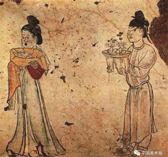 唐代章怀太子墓壁画上 侍女的手中捧着装饰了花朵与彩树的“酥山”