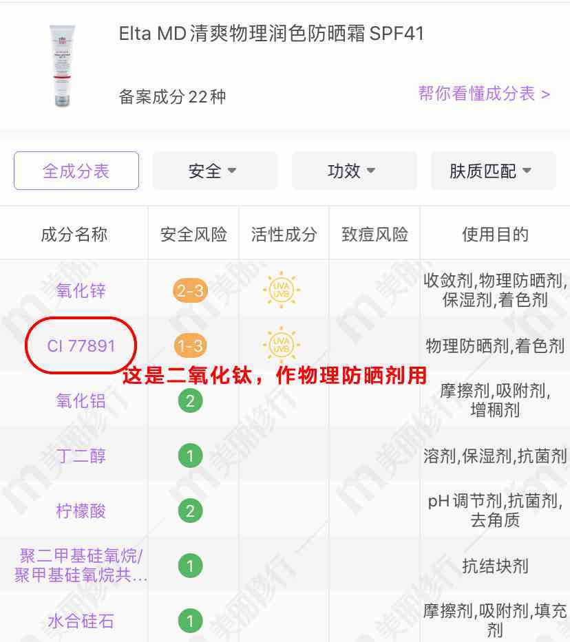 EltaMD41度物理防晒的主要防晒剂是二氧化钛⬆️