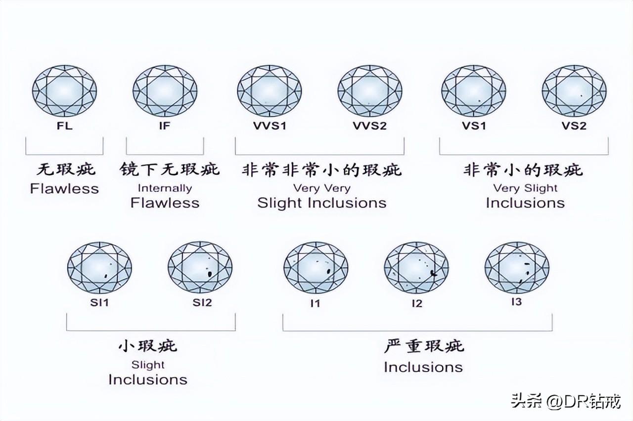 根据国际流通的钻石净度分级表,将钻石净度分成11个等级,从高到低为FL、IF、VVS1、VVS2、VS1、VS2、SI1、SI2、I1、I2、I3。如果您是想要收藏,建议买FL,IF,VVS1,VVS2;结婚佩戴则可考虑买VVS1,VVS2,VS1,VS2;追求性价比可以下手SI1。