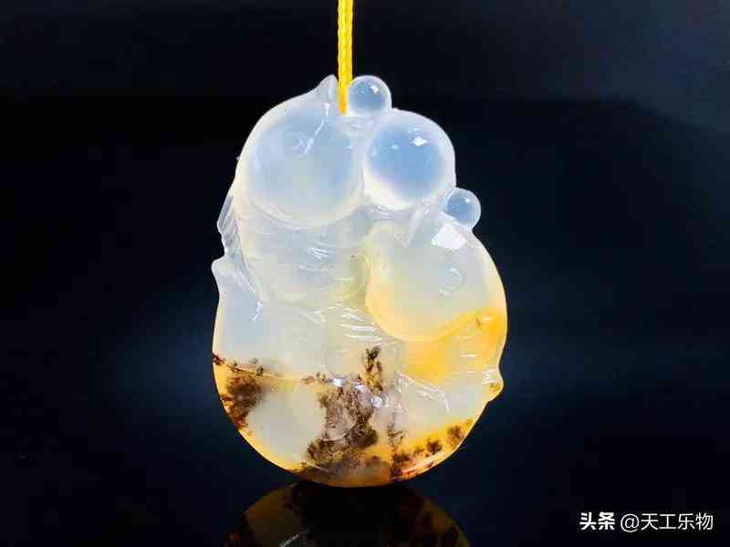 区分要点:黄龙玉的透明度较高,色调比黄玉更加艳红,内部纹理明显,打灯能看到类似田黄石的萝卜纹,有时还会伴生水草纹。