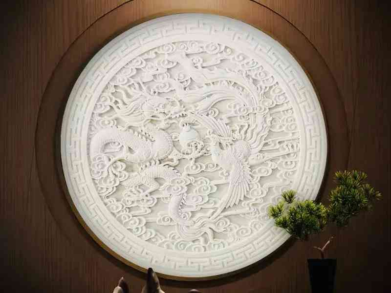 区分要点:汉白玉表面有细微纹路,石性较重而且易碎,无法进行镂空雕刻,多以浮雕工艺为主。