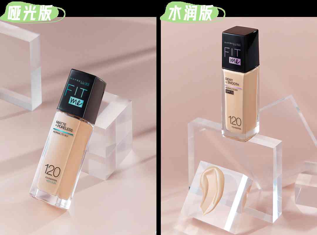 美宝莲的FIT ME粉底液可以说陪伴了我的化妆新手生涯~它有哑光版和水润版两种,分别适合油皮和干皮使用。