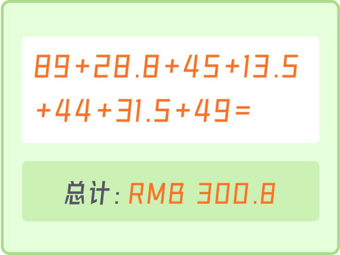 最后!拿出计算机把这些产品都加起来,总价为300.8元!小小超支了那么8毛钱~