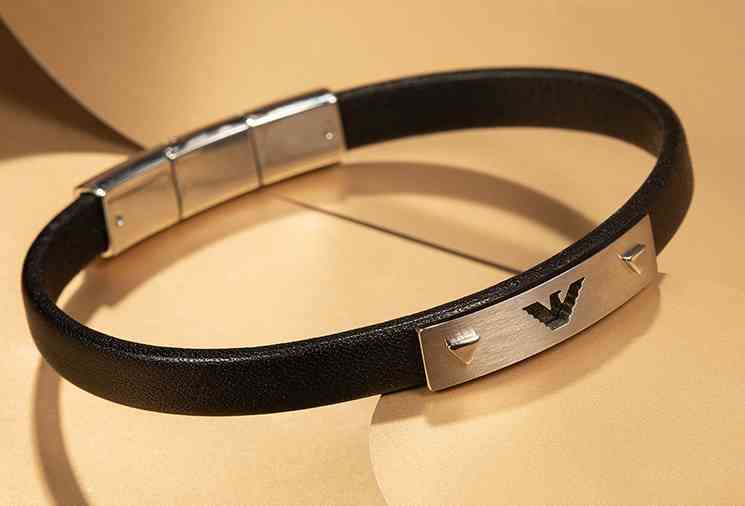 黑色皮革银手链,简约不失时尚,可以与腕表进行搭配。