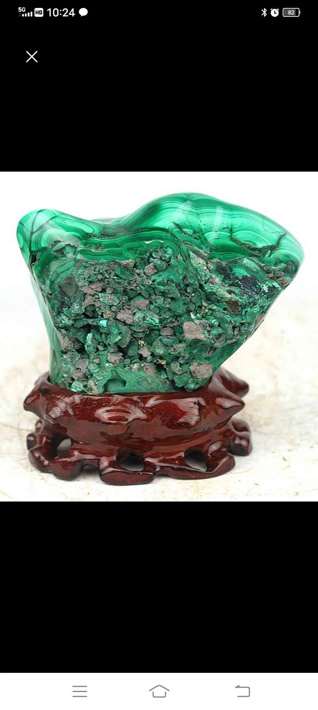 现出孔雀石本身天然生成的质优者,可制作项链、戒面、鸡心等饰物。但个别颜色鲜艳、构造奇特者,身价不非,相当品意,孔雀石还可人药。股墟的治铸遗址中曾发现不少孔雀石块。孔雀石通常产千铜上部,成分是碱式碳酸铜CuCO(OH),其质地细密纯优美,颜色非常鲜艳,酷似孔雀羽尾,放以孔雀名之,殊为生动而贴切。孔雀石硬度3.5~4,比重325~41,不透明,属单斜晶体。呈隐晶质状态。颜色为蓝色和深、淡绿色相间。色层呈云纹或带状,亦有呈同心状相间之态。
