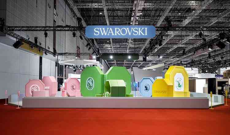 施华洛世奇展台从5月的快闪概念店Instant Wonder体验中汲取灵感,以大胆创意、几何元素和略带超现实主义的巧妙融合,呈现全球创意总监乔瓦娜·英格柏(Giovanna Engelbert )的奇想空间与全新产品设计。五种独具个性魅力的色彩演绎品牌理念——纯净无瑕的乳白,是绚烂色彩之源;天蓝色则是致敬品牌创始人丹尼尔·施华洛世奇 (Daniel Swarovski) 制作的台仿水晶切割机;生机盎然的草绿代表品牌设计所蕴含的自然与可持续发展;柔粉,代表品牌主张性别中立而更强调个体表达;洋溢着活泼能量的明黄,则代表着拥抱未来的璀璨光芒。不同颜色的混搭,仿佛把大家带入了一个似糖果般的甜美梦境。