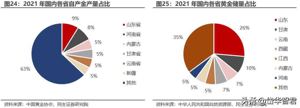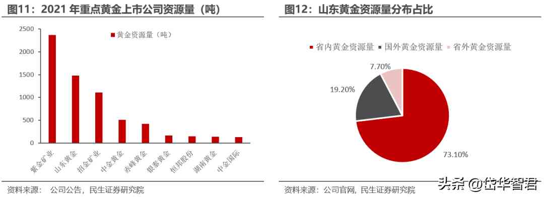 资源储量领先行业,主要分布于山东省内。我国黄金储量分布集中,山东省黄金产量位居全国。