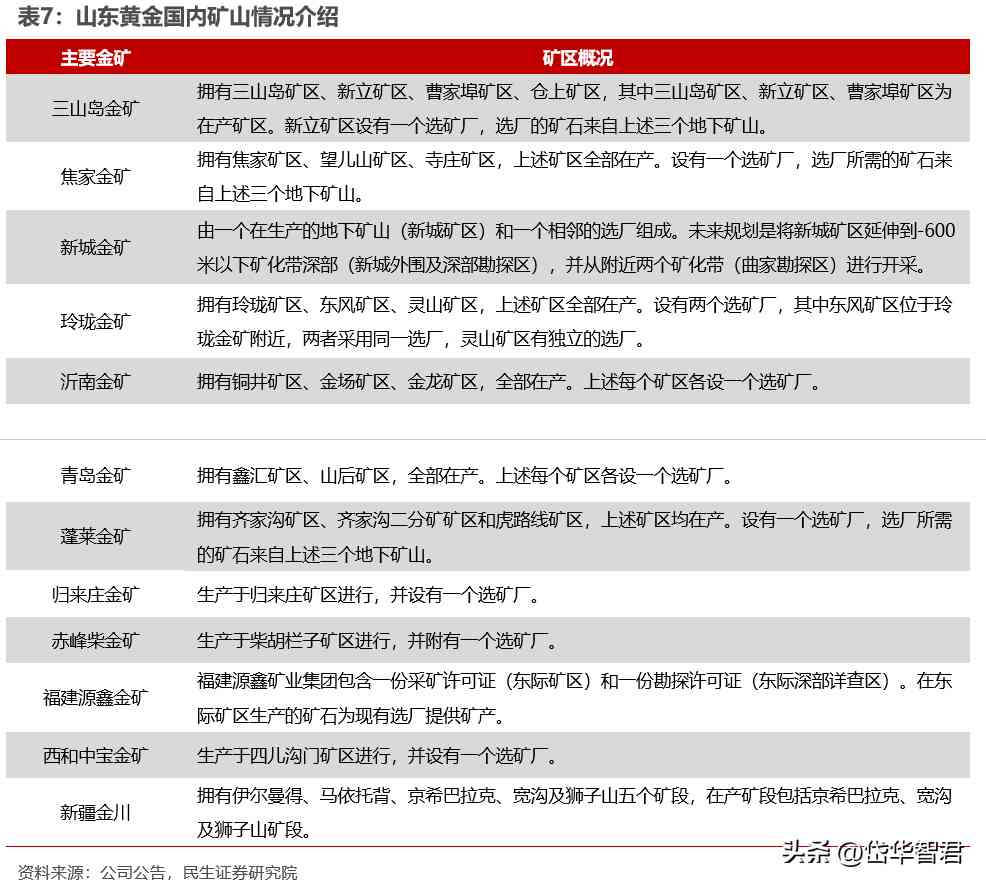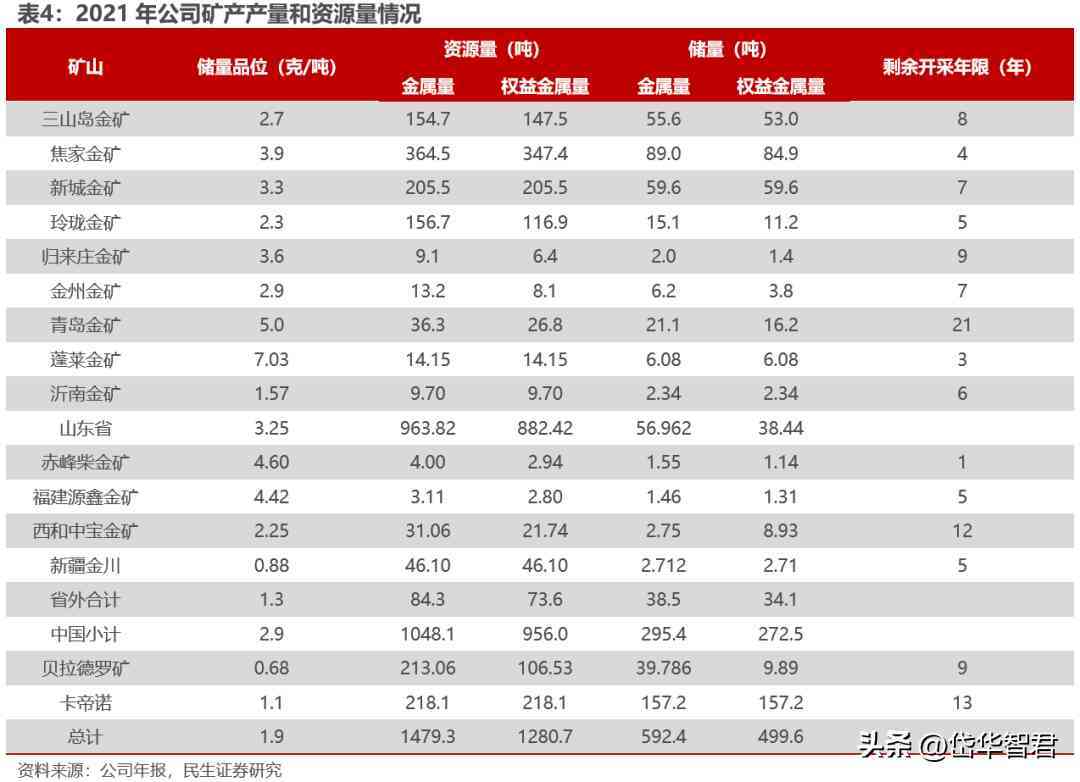 根据公司港股招股说明书,三山岛、焦家、新城、玲珑金矿位于胶西北和招远地区。其中三山岛金矿、焦家金矿为国内机械化程度最高的金矿之一,三山岛金矿旗下的新立矿区为国内投产的海下金矿,焦家金矿位于胶北断裂带南部,矿床高度连续,易于开采。新城金矿为中国黄金行业获生态环境部认可为“国家环境友好企业”的金矿。玲珑金矿为中国最古老的金矿之一,为国内少数累计产量达100吨的金矿。