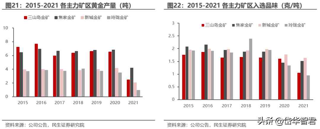 2021 年公司业绩下滑主要受山东省内安全检查的影响,矿山局部停产,导致公司自产金产销量大幅下降,归母净利润有所下滑,随着各矿山复产,2022年业绩逐步恢复。