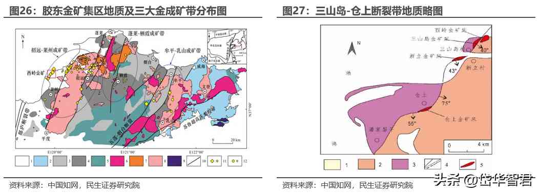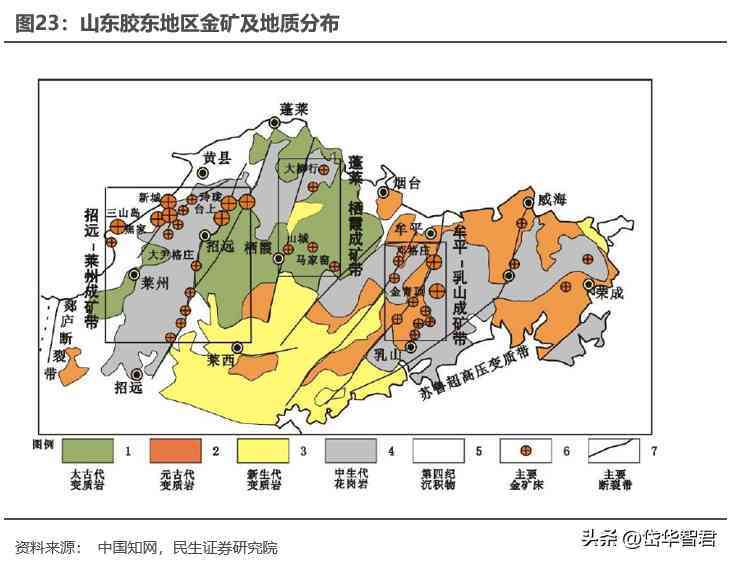 资源方面,莱州地区位于断裂地质构造带,区位优势显著。胶东地区断裂构造控制了区内金矿床的形成与分布,断裂带地下岩浆运动巨裂,多半伴随有火山爆发,地震,为金矿形成提供了所需的温度环境和物质构造。莱州市位于三山岛断裂带、新城-焦家断裂带、招平断裂带的交界处,在三者的共同作用下,形成了招远-莱州成矿带。其中,新城-焦家断裂带上分布矿产最多,该断裂带控制了新城、焦家、马塘、望儿山等一系列焦家式金矿床。