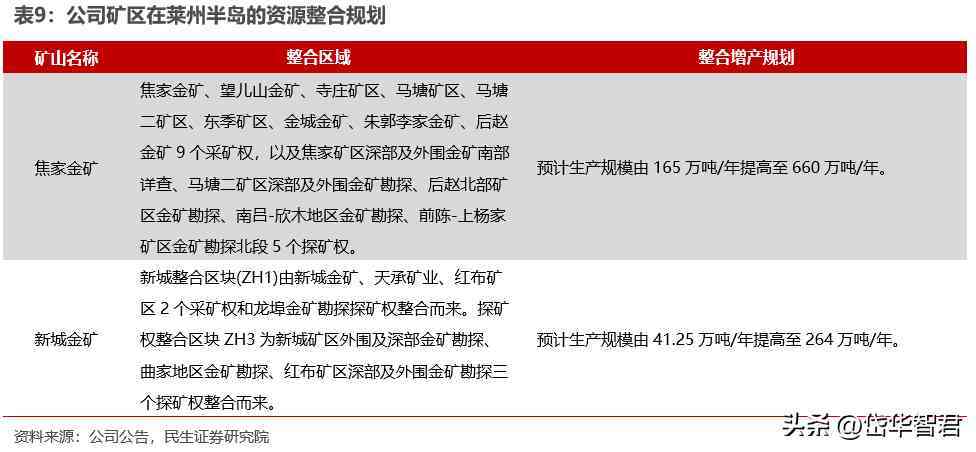 资源整合、集中开发为趋势,焦家、新城地区矿权整合顺利。通过将分散矿区矿权整合进行集中开发,可实现矿山资源综合利用,有效控制开发成本,提升资产规模和盈利能力,为打造世界黄金生产基地的必经之路。目前公司在胶东半岛已有明确规划的整合项目主要包括莱州市的焦家金矿、新城金矿以及蓬莱市的蓬莱金矿,其中焦家、新城金矿均位于莱州地区。