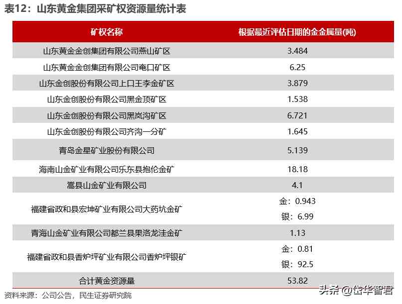 从集团的黄金资源来看,主要分布在国内,截至022年6月,集团公司共拥有26处属于境内探矿权,主要分布在山东、福建和青海等省份按备案资源量共计417.59吨,以莱州市西岭金矿为主力资产(探明资源量383吨)。此外,集团还拥有12处位于中国境内的金矿采矿权,探明资源量总计53.82吨,主要分布在山东等地。