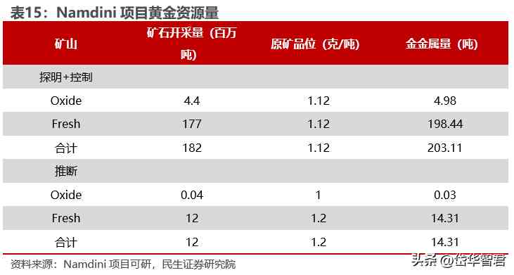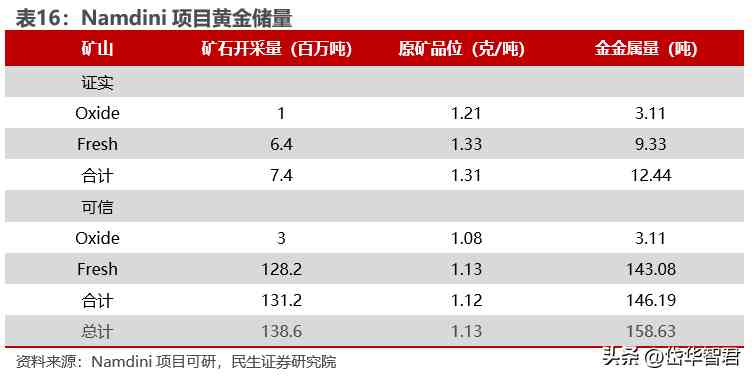 储量方面,Namdini项目拥有证实和可信金储量158.6吨,原矿品位为1.13g/t。