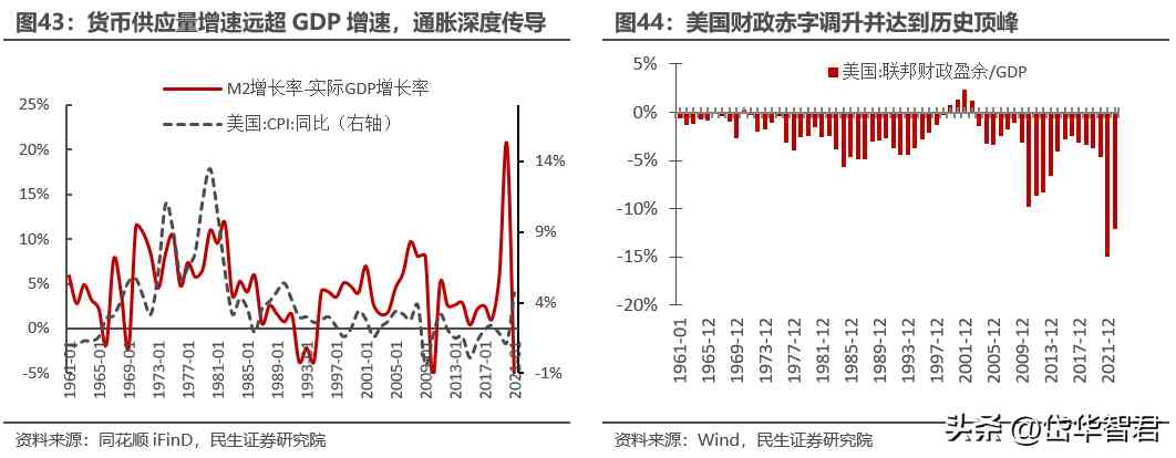 货币政策方面,1960-1970s凯恩斯主义的经济政策的大幅运用,使美国财政赤字逐渐扩大,货币政策持续维持宽松,到1969年底,美国财政赤字经过累计已经出现显著增长,为后续十年的通胀埋下了伏笔。2020年新冠疫情爆发以来,美联储通过大幅增加社会福利支出刺激疫后经济的复苏,财政赤字水平大幅走高,与60年代末历史情况具有类似性。