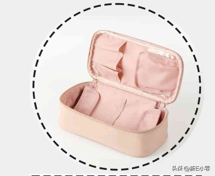 这一块的部分是魔术贴的,可以直接把它拿下来,同时下面这个敞口的区域容量是完全够用的,粉饼睫毛夹都能放进去,这个化妆包是我觉得体验感很好的一款。