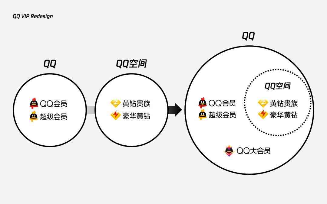 QQ原有的两大会员体系QQ会员和QQ空间黄钻,原本互相独立,产品运营和用户体验上存在很多差异。但QQ空间本身是基于QQ关系链而存在的社交平台,对用户而言QQ空间属于QQ产品下的业务分支,因此QQ会员和QQ空间黄钻两大会员业务也应该突破原本的资源壁垒,提供统一的用户体验。