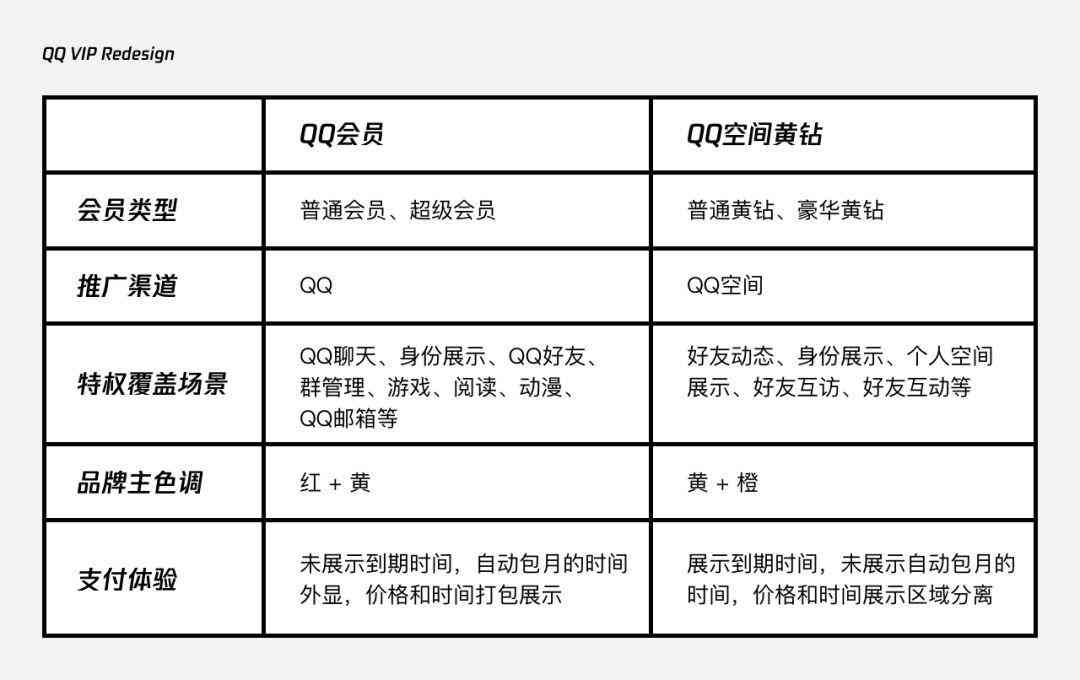 QQ会员和QQ空间黄钻是QQ平台上早已运营多年的会员体系,在会员类型、推广渠道、特权覆盖场景、界面风格、支付体验等方面存在不少差异。