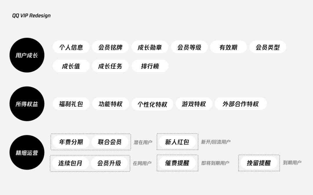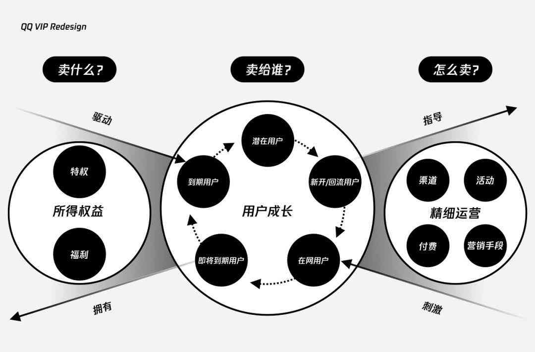 以QQ会员为例,根据不同用户生命周期,针对潜在会员用户和会员用户两种情况。