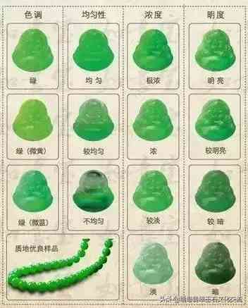 一级:纯正绿、祖母绿、翠绿等,颜色极均匀,艳润亮丽