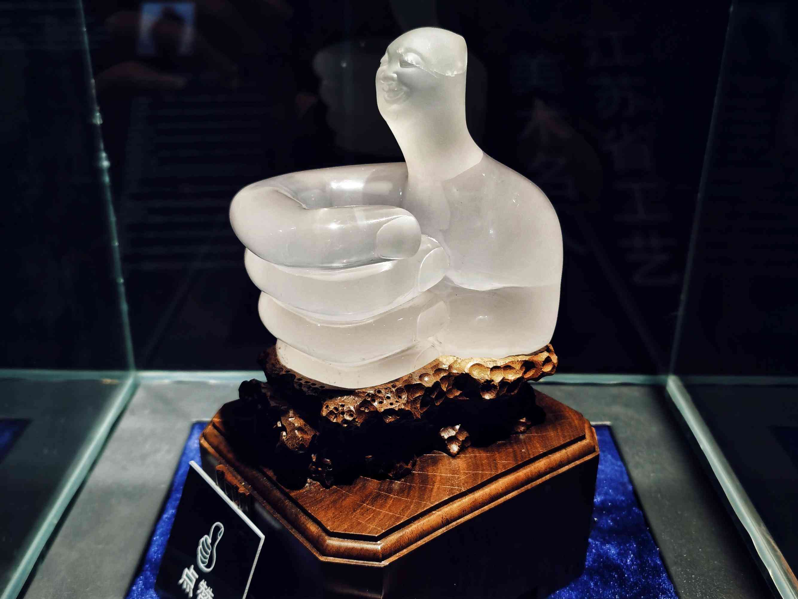 随后的每一个展厅都空间开阔,黑暗的环境中强光照亮世界各地不同品种的水晶和雕刻得巧夺天工的水晶工艺品。形如多层山一般的绿幽灵、发丝细密的黑发晶、金光辉煌的“世界钛金大王”……流溢的晶莹光泽令我惊艳,亦令我沉醉不已。甚至还真的有一座水晶宫殿,水晶回廊通向幽深处一座亭阁,只可惜黑暗中缺了一位龙王,打破了胡思乱想的幻境。