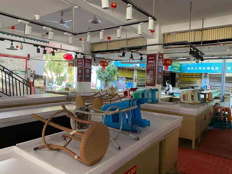 正因此,解封期间她拿共享电单车练手,学会了开车,傍晚在台丽街收柜后,兜上点货去打游击,在珠宝城随便找个空摊位摆货,“他(摊主)来我就让呗,其实也不会来,到处都空着”。至去年年底,在她待过的珠宝交易市场“样样好”、“多宝之城”、“德龙珠宝城”,摊位上的椅子多数散放桌角,或倒扣在台面,有些柜台则蒙着塑料布防灰。
