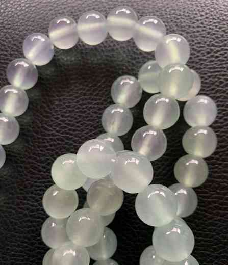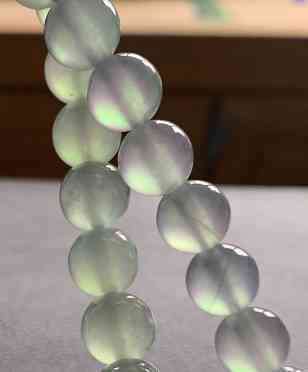 诸位试想一下,皮料、龙石种、帝王绿、无裂、无纹、无棉、无明显色根、58/13的手镯,如果成对出现,到底是什么样的神仙物种?又能有多少?一条达到上述标准接近无色差的珠链,也是近乎不存在的,但还是有非常少的量存在于人世间。笔者见过的一条顶配级珠链,宝主买了5条同样大小的塔珠链(在渠道都是价格高不可攀,依然有色差和棉),废掉了其中2条链子,才拼凑出一条颜色比较接近的108颗1.6-2.0的珠链。