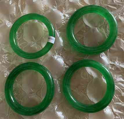 下面看一下这几条翡翠镯子在无光和透光情况下的颜色变化: