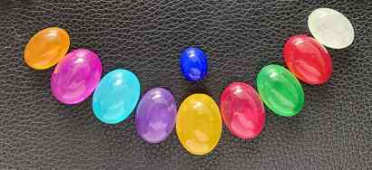 从左到右:橙、地王紫、天空蓝、茄紫(老的粉紫很少见,一般都是出现在龙石种的白或茄紫的变色时刻)、鸡油黄、玫红、绿、红、白,和最顶上的宝石蓝。当然老翡翠的颜色是无法穷尽的,光是各种深浅的绿、各种深浅的红、各种深浅的紫,就数不过来。加一起应该有百余种颜色甚至更多,按照大类可以粗糙地分成以下十色: